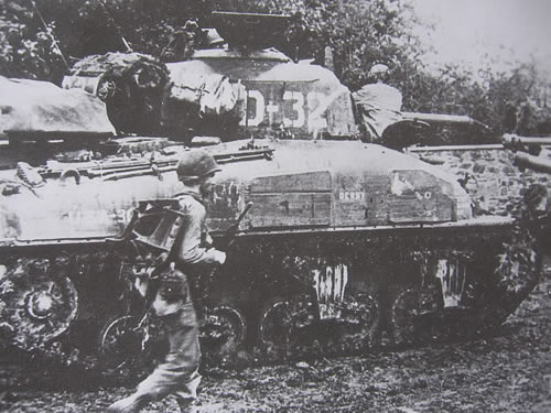 This was the first 1/72 DML Sherman I'd purchased and my intention was to build it out of the box, and I'd gotten halfway through the build before I noticed DML had made some a couple big departures from the real Derby. My attempt at an AMS-free build was overcome by the desire to fix the most obvious flaws. By that point, to do so I needed to purchase second kit...and a set of Caliber72 open spoke road wheels. But the initial kit would not go to waste—since I wanted to create a diorama inspired by the ubiquitous photo of Derby moving past knocked out Pz IVs on the muddy road near St. Fromond, north of St. Lo, on July 9, 1944. The first Sherman—soon to be christened "Delight" by me—could back up Derby, provided I could work out the distinctive decal markings.