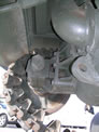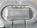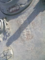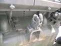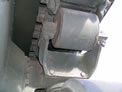 The disk idler was relatively new in production at the time 12306 was built. Note the idler bracket to the right. The part with three ribs closest to the wheel is the actual idler bracket. The portion with two ribs is the spacer added as part of the E9 suspension modification. It is bolted in the original bracket location and welded to the hull around the edges. In the view of the idler bracket at the hull rear, the large ribbed piece to the right of the bolt flange is the spacer as well. (The seam between the idler bracket and the spacer is visible on the bottom.) Note the round joint casting that joins the hull rear and bottom plates. This differs from the flat plate set at an angle used on the large hatch M4A3s and will need to be changed if using a later M4A3 hull in a conversion.
