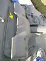On the left side of the tank there were three gasoline filler caps, as seen here. The two rear fillers (mirrored by two others on the right side) empty into the main engine tanks while the one inside the turret splash ring is for the auxiliary engine. (There is no corresponding filler on the other side, rather a ventilator for the fighting compartment.) The rectangular block on the hull in the lower right of the photo is actually sheet metal and is open at the rear; it is one of the brackets that holds handle end of the pry bar. The point is held in a triangular bracket by the hull lift lug while a leather strap through the loop by the middle filler cap held the pry bar in place. The fitting to the left of it holds the towing cable.
