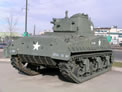 This mid-production M4A3 tank appeared at an expo at Fort Snelling. It resembles the M4 with the driver and co-driver vision slots protruded from the sloping 56° glacis plate on the front of the tank. As this was a vulnerable spot against enemy armor, steel plates were welded in front of the hatch areas. The main difference between this tank and the M4 are the engines, engine deck, and rear end of the hull.