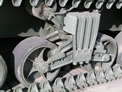 The differential housing attachment bolts protrude above the housing, which was ballistically undesirable. A cast in splash guard was fitted introduced on three-piece housings and standard on the E4186 single anchor brake housings shown here. Later E8543 double anchor brake housings left this part of the casting thick and machined recesses for the bolt heads so they were fully protected from bullet splash. Small hatch M4A3s were made with the E8543 housings starting in August, 1943.