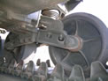 The return roller brackets have spacers mounted under the roller axle to raise the track so that all-steel tracks did not drag on the skid above the bogie and damage it. About the time this tank was being built a new bracket with an upwardly angled shape that did not need a spacer was being incorporated into production.