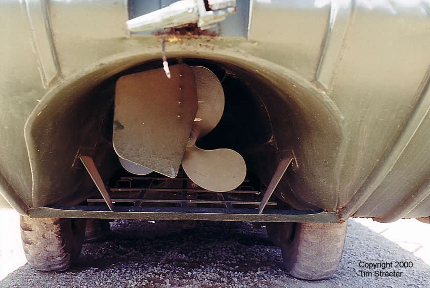 GMC 6x6 cargo truck. Equipped with a propeller and rudder on the
