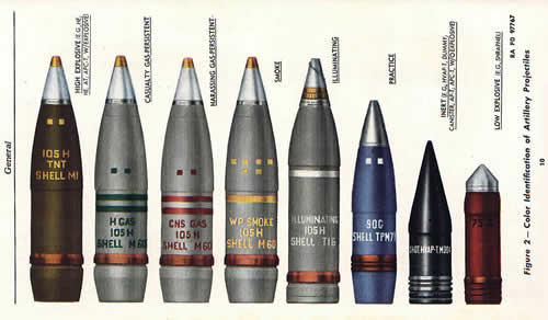 addition to color coding projectiles were painted with identifying words and designators