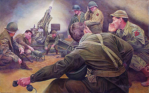 a diorama of a 155mm and its crew receiving supplies and mail during