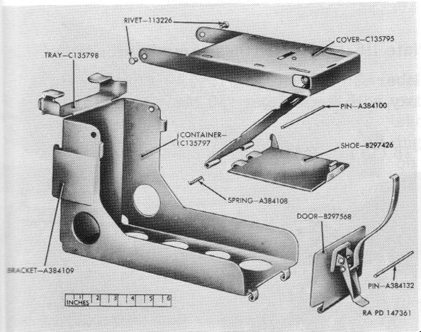 7b Exploded view of the ammunition box tray used with the D80030 cradle and