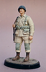 dressed in the M1942 airborne jumper's coat and trousers, and over his shoulder