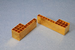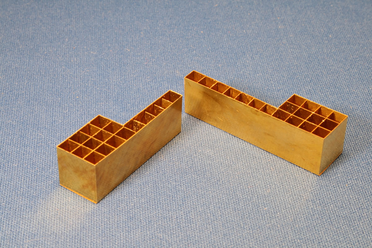 sheet metal cover is fashioned in brass, but oddly: there are etched recesses