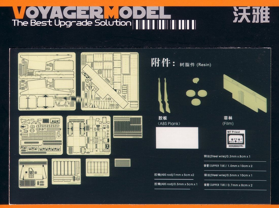 machine gun and brass barrel parts, and resin tools), but nothing points to the
