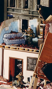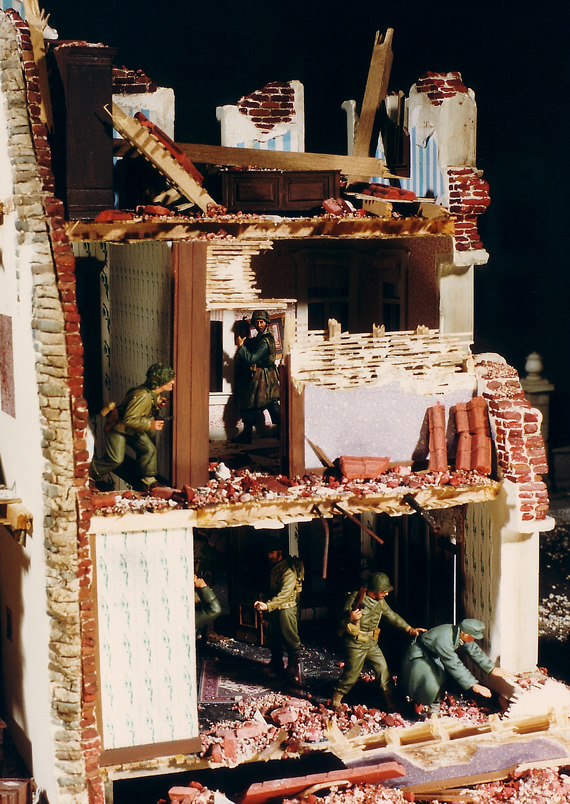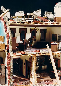 rubble of brick, stone, joists, beams and flooring. I build several broken sections