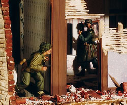The interior wall of the church was detailed with Verlinden's self-adhesive "marble"